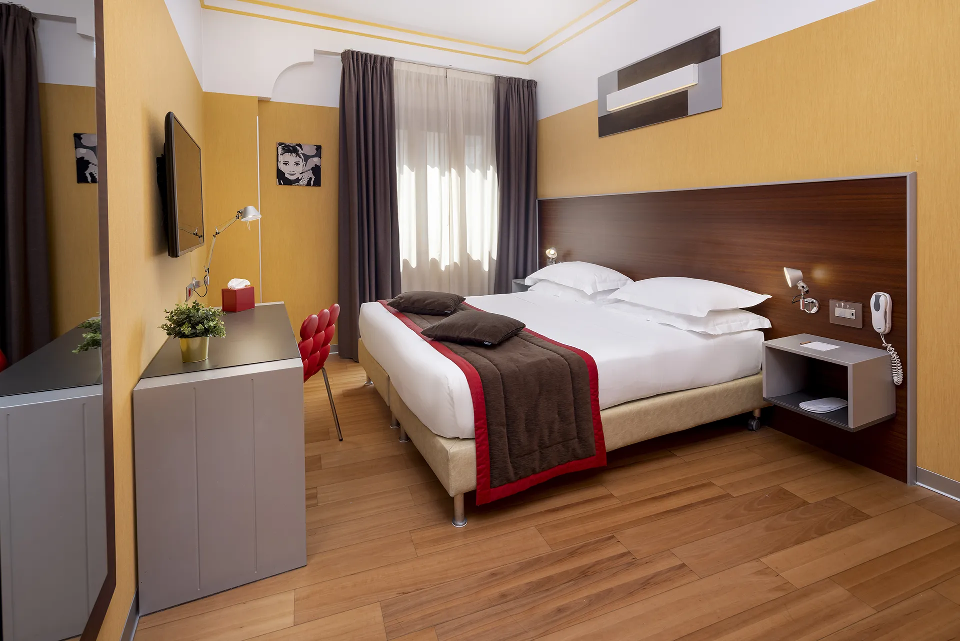 Con una superficie tra i 12,5 e i 17 m², la Camera Comfort Matrimoniale è disponibile in configurazione doppia o matrimoniale, offrendo la possibilità di scegliere tra un letto king size (180×200 cm), un queen size (150×200 cm) oppure due letti singoli separati (90×200 cm).